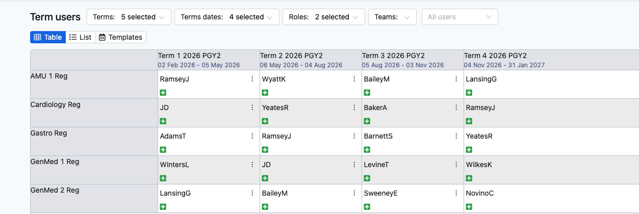When a JMO is allocated to a term, their roster pattern is applied automatically and they are transitioned into the appropriate team — including all communications, responsibilities, and administrative oversight.